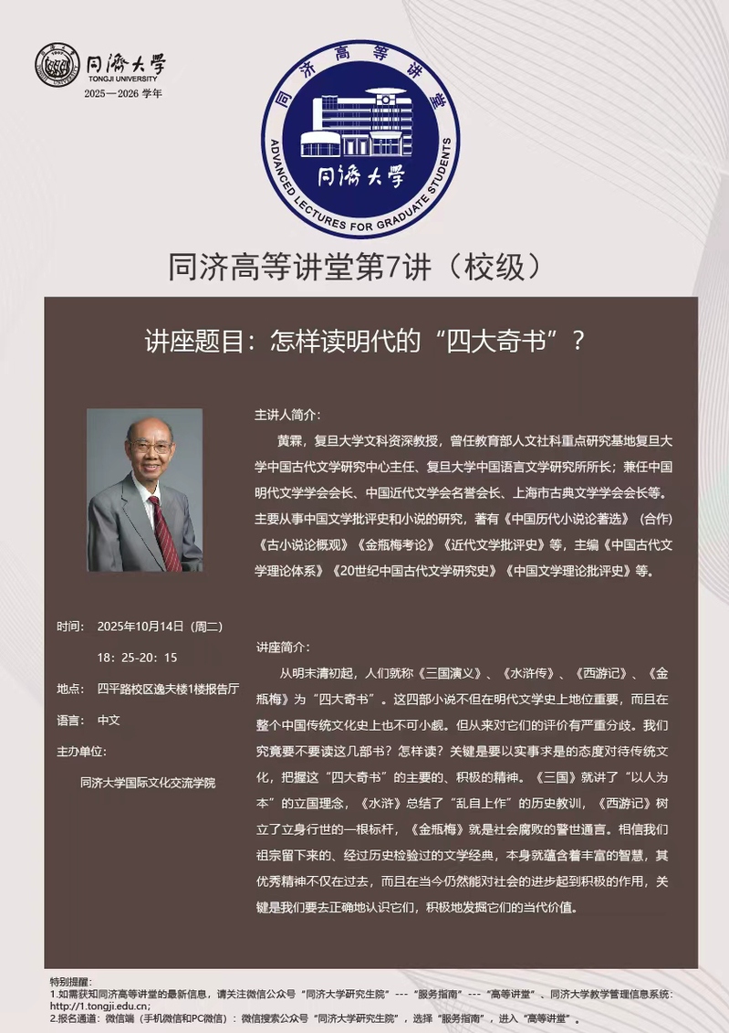 同济高等讲堂第7讲(校级)|黄霖:怎样读明代的“四大奇书”?