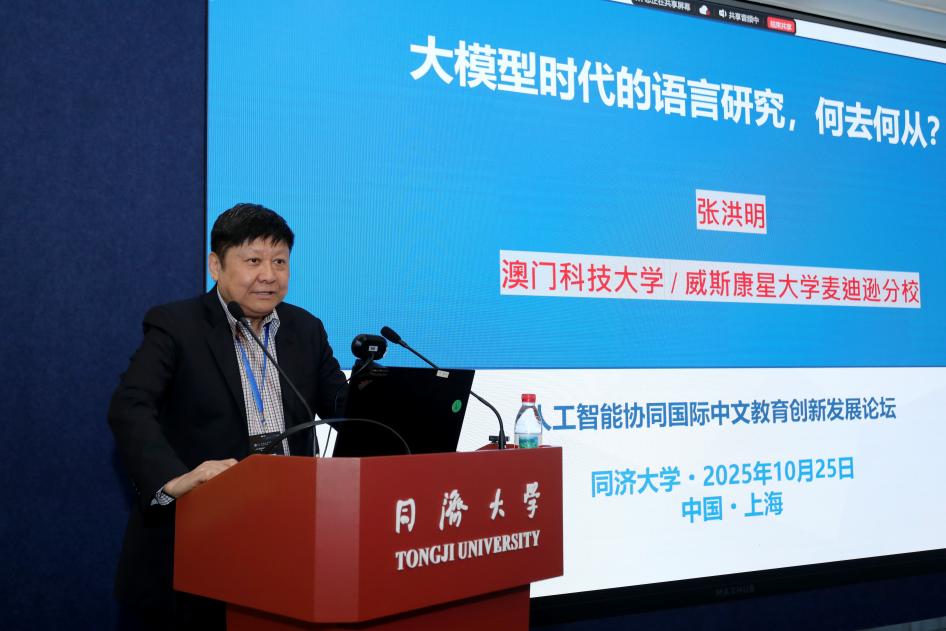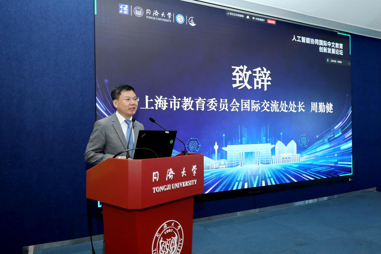 10月25日上午,“人工智能协同国际中文教育创新发展论坛”在同济大学隆重开幕。教育部中外语言交流合作中心副主任刘剑青、同济大学常务副校长吕培明、上海市教育委员会国际交流处处长周勤健等嘉宾出席开幕式。