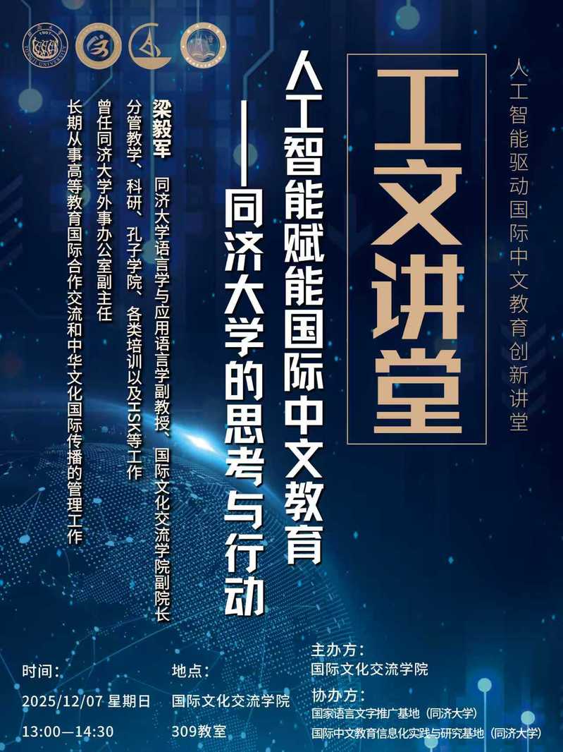 【讲座预告】工文讲堂|梁毅军:人工智能赋能国际中文教育——同济大学的思考与行动