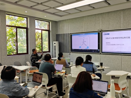 4月9日,荀恩东教授以《国际中文数智教育理论和实践》为题,深刻剖析了当前国际中文教育面临的“课前课后效率不高、教师负担过重、AI软件多固化、系统碎片化”等现实困境。他基于行为主义、建构主义与二语习得理论,提出了以“精讲多练”为核心的智慧教育理念,阐述了数智化赋能“助学、助教、助管理”的三个层次。荀教授强调,AI的目标不是替代教师,而是赋能教师、助力学生、优化管理。他详细介绍了由数据层、基础设施层和应用层构成的智慧教育三层架构,以及“融资源、融教师、融课件”的“三融”设计理念。随后,荀教授现场指导参与者利用北京语言大学国际中文智慧教学系统制作“融课件”,并针对实操中遇到的痛点问题进行答疑解惑,展示了如何通过技术让“因材施教”成为可能。