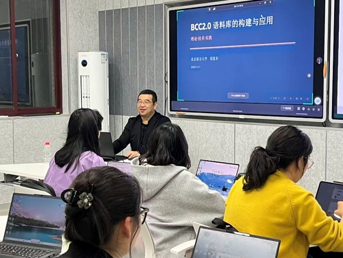 作为工作坊的收官之作,4月11日晚,荀恩东教授主讲了“中文‘零距离’,‘三化’融世界”系列讲座的第二讲——《BCC2.0语料库的构建与应用》。他首先解析了语言大数据的三种表征:语料库是语言大数据的采样,大模型是语言大模型压缩后的成果,知识图谱则是语言大数据的结构化呈现。讲座系统梳理了BCC语料库从采集、加工、标注到检索的全链条技术流程,并详细介绍了BCC2.0在数据规模、检索效能与服务场景上的全面跃升。参与者在荀教授的指导下,亲身体验了语料库在近义词辨析、构式研究及语体对比等领域的强大实证能力。这一沉浸式的研学体验,不仅深化了在场师生对数据驱动语言学研究范式的理解,更为今后的科研创新与教学实践提供了强有力的工具支撑。
