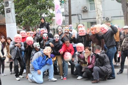 2月4日下午的四平社区热闹非凡,一年一度的社区元宵节欢庆活动正在举行,有如长龙的街游队伍吸引了附近近六千名居民。在街游的长龙中,来自国际文化交流学院的大头娃娃表演队引来观众的阵阵掌声和欢笑。大头娃娃表演队行进过半时,大头娃娃们摘掉头罩,露出各色皮肤的笑脸,周围观众才发现这些大头娃娃原来都是留学生扮演的。