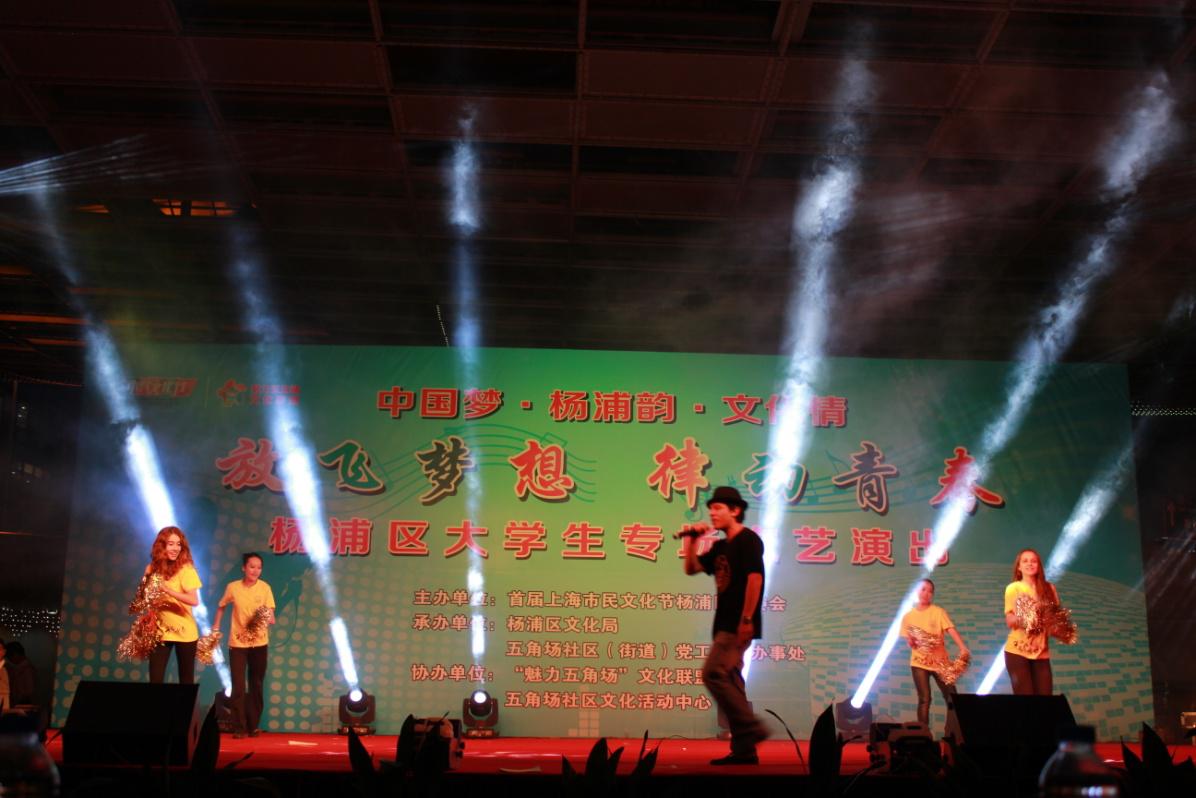 10月23日晚,由首届上海市民文化节杨浦区组委会主办,杨浦区文化局、五角场社区党工委承办的杨浦区大学生专场文艺演出在五角场下沉式广场举行。来自我校、复旦大学、上海财经大学、上海体育学院等高校的学生参加演出。