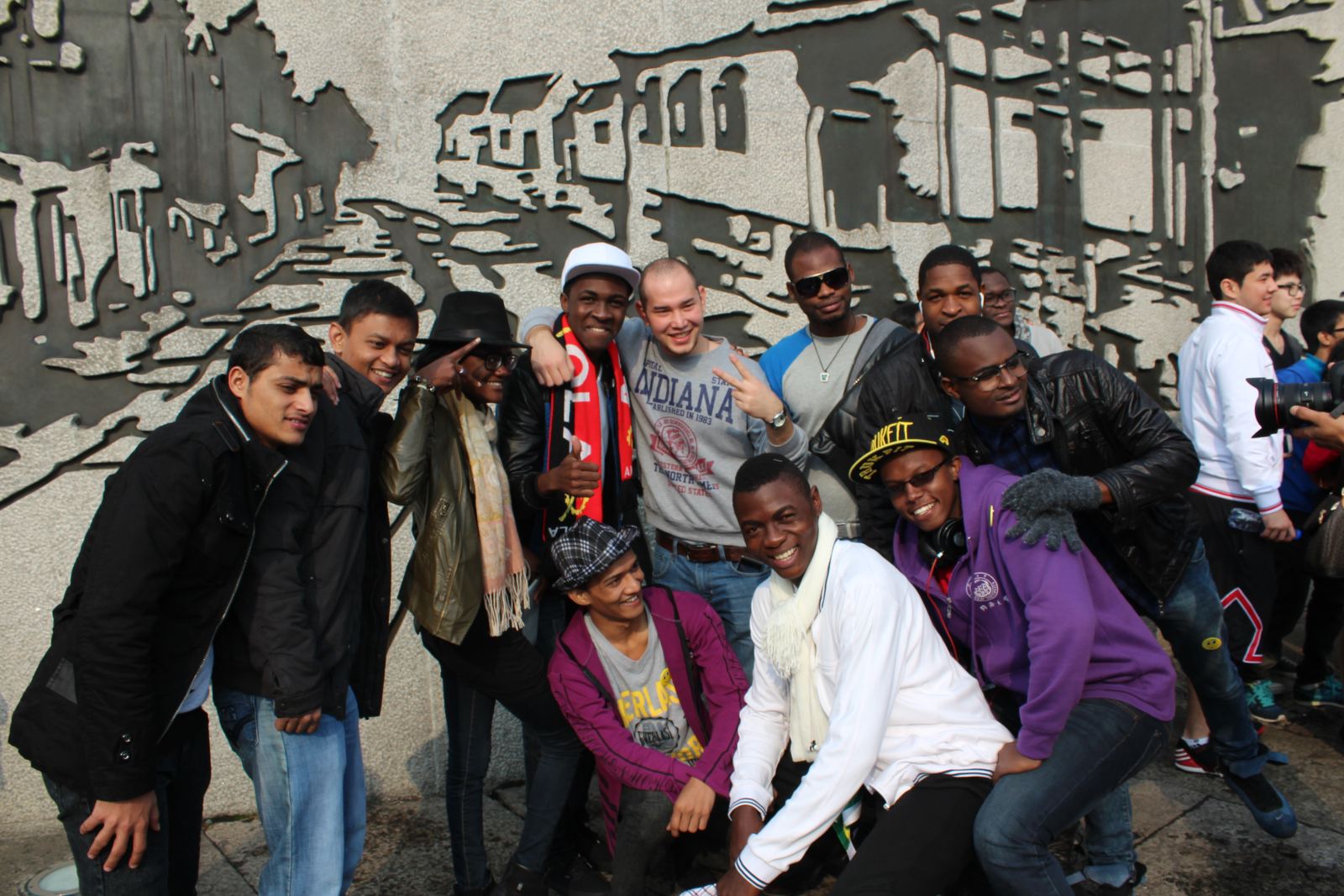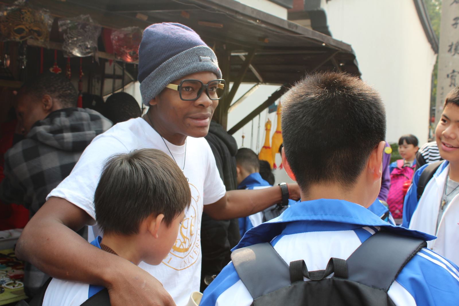 第二天,艳阳高照,载着留学生的12辆大巴驶进了鲁迅故里,从百草园到三位书屋,无论他们走到哪里都是人群的焦点。大多数留学生并不熟识鲁迅,可他们依然津津有味地聆听着导游的介绍。他们兴高采烈地与其他游客合影互动,而那些刚学了三个月汉语的预科生则选择了与前来秋游的绍兴小学生们聊天、对话。