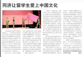 上海是留学生留学中国的首选城市之一。充分利用自身的地域、经济和文化优势,充分调动和整合相关优势教育和文化资源,探索留学生培养的“上海模式”,培养出“知华、友华”的留学生,为上海的未来发展积蓄“知沪、友沪”的国际人才,成为沪上高校在留学生培养工作中追求的目标。同济大学国际文化交流学院通过在留学生中开展中华文化经典作品诵读,让留学生爱上了中国文化。12月11日,同济大学国际文化交流学院举办了首届外国留学生歌咏、诵读大赛。当留学生们伴着非洲歌舞朗诵《三字经》时,中国文化要素似乎一下子具有了现实的动态感; 当李白的 《静夜思》 在带有异域色彩的情景中表现出来时,使人顿有天下共一月之感。其他篇目如苏轼的《水调歌头·明月几时有》、朱自清的《春》、毛泽东的 《七律·长征》、舒婷的《致橡树》、徐志摩的《再别康桥》等,也都被留学生们别具一格地一一歌咏、表现出来。
