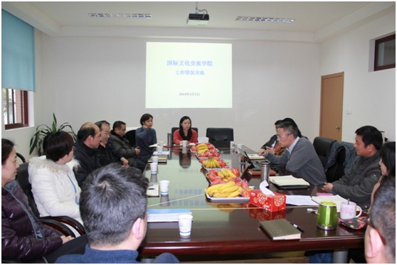 会议旨在增进双方的进一步了解,促进双方的深层次工作交流,为今后的合作奠定更为坚实的基础。陈强院长首先介绍了学院的基本情况、主要工作及具体困难。而后,双方就工作中需要互相协调解决的问题进行了热烈讨论,就如何解决英语通识课课程酬金、开辟预科生报到绿色通道、学生数据对接等问题达成初步共识。会议气氛祥和活跃,参会人员纷纷表示会议开得有意义,有成效,希望今后将国际文化交流学院和留学生办公室之间的工作会谈机制常态化。