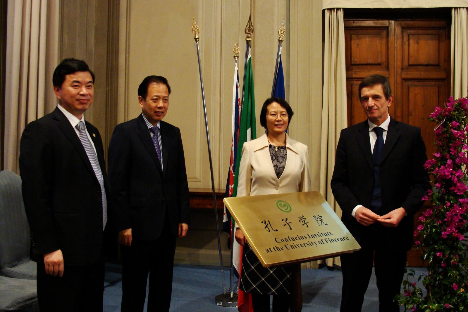 2014年3月31日上午,我校承办的第四家孔子学院——佛罗伦萨大学孔子学院揭幕仪式在意大利隆重举行,中意各界来宾150多人济济一堂,共同见证这一历史时刻。佛罗伦萨大学校长Alberto Tesi教授、同济大学党委书记周祖翼教授、中国驻意大利大使李瑞宇、中国驻佛罗伦萨总领事王新霞、托斯卡纳大区教育部长Emmanuele Bobbio、佛罗伦萨省主席Andrea Barducci、佛罗伦萨市教育局局长Cristina Giachi先后致辞。周祖翼书记指出,在佛罗伦萨这座文艺复兴名城与同样历史悠久的佛罗伦萨大学合作承办孔子学院,是同济大学的荣幸。同济大学将与意方共同努力,发挥双方各自的优势,整合相关资源,建设一所有特色的孔子学院,为汉语国际传播和中意文化交流做出积极贡献。