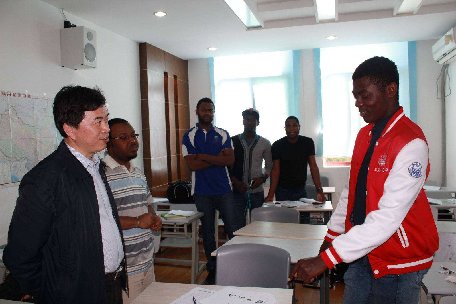 4月15日下午,校党委书记周祖翼教授来到国际文化交流学院,察看了教室、图书资料室、古琴教室、学生活动空间等硬件设施,看望了学院部分教师和工作人员,并在课间与预科A7班的同学们热情交谈,询问他们在我校的学习和生活情况,该班是两个预科慢班中的一个,但是同学们也能和周书记用简单的汉语交谈。在听取学院负责人关于学院基本情况和主要工作的汇报后,周祖翼书记指出,近年来,国际文化交流学院工作取得一些成效,在此基础上,学院应根据国家汉语国际推广和软实力提升的战略需要,结合自身优势,明确发展定位。学院应进一步巩固现有的工作成果,同时积极融入学校发展大局,将学院的发展与学校各项中心工作有机结合起来。周书记还就留学生日常管理、毕(结)业生校友工作、学院宣传工作等事宜做出具体指示,希望学院与学校相关部门协同,推动留学生趋同化管理,促进中外学生的融合发展。周祖翼书记还询问学院师资队伍建设、财务管理、孔子学院发展与建设等情况。周书记还提出,学院一楼东侧的活动空间可以作为今后学校教师发展中心的研讨和交流场所。