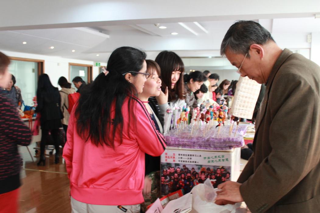 民俗文化展示区也吸引了众多观众的眼光。脸谱、捏面人、剪纸,让留学生们倍感新奇,纷纷上前一试身手,亲身尝试。在老师指导下,充分发挥自己的想象力,完成一幅幅属于自己的艺术作品。
