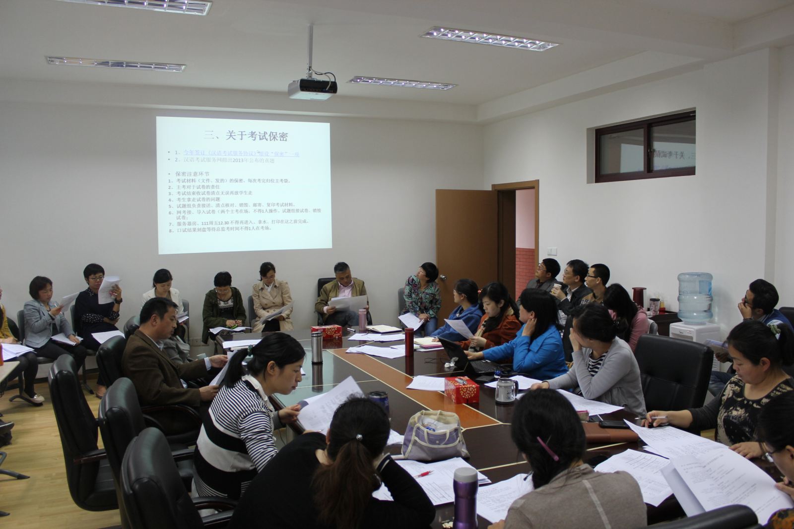 为了举办好如此大规模、种类繁多的考试,HSK考务中心负责人组织工作人员及主监考,考前精心、充分做好考务每一个环节的准备工作:反复多次核对考生报名信息缴费状态;多次检测调试听力红外线设备、口试设备、网考设备,并举行网考、口试考前模拟考试;组织全体考务人员考前培训;为确保考生都能及时准确网上报名,完成在线支付,考务办公室工作人员和各班班主任随时、现场手把手指导考生,确保了本次考试的顺利进行。