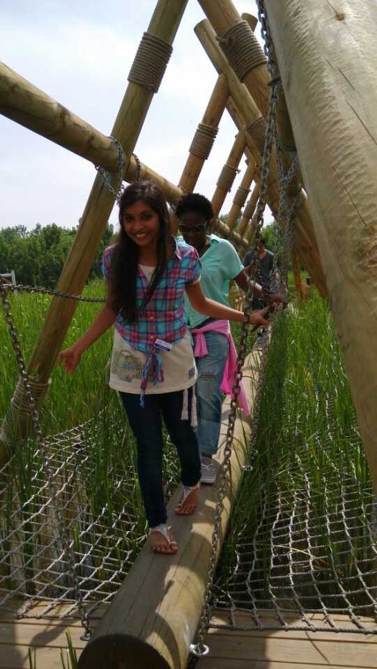 经过四个小时的路程,终于到达了溱湖国家湿地公园。由于不是周末,景区内的游客并不多,更显舒适和恬静。从溱湖湿地科普馆到湿地精品园,从鳄鱼馆到麋鹿观赏园,从农事乐园到探险乐园,留学生们踏过丛生的芦苇,闻一闻清新的香蒲花,踩踩水车,推推石墨,圆了一个乡村田园的生活梦。