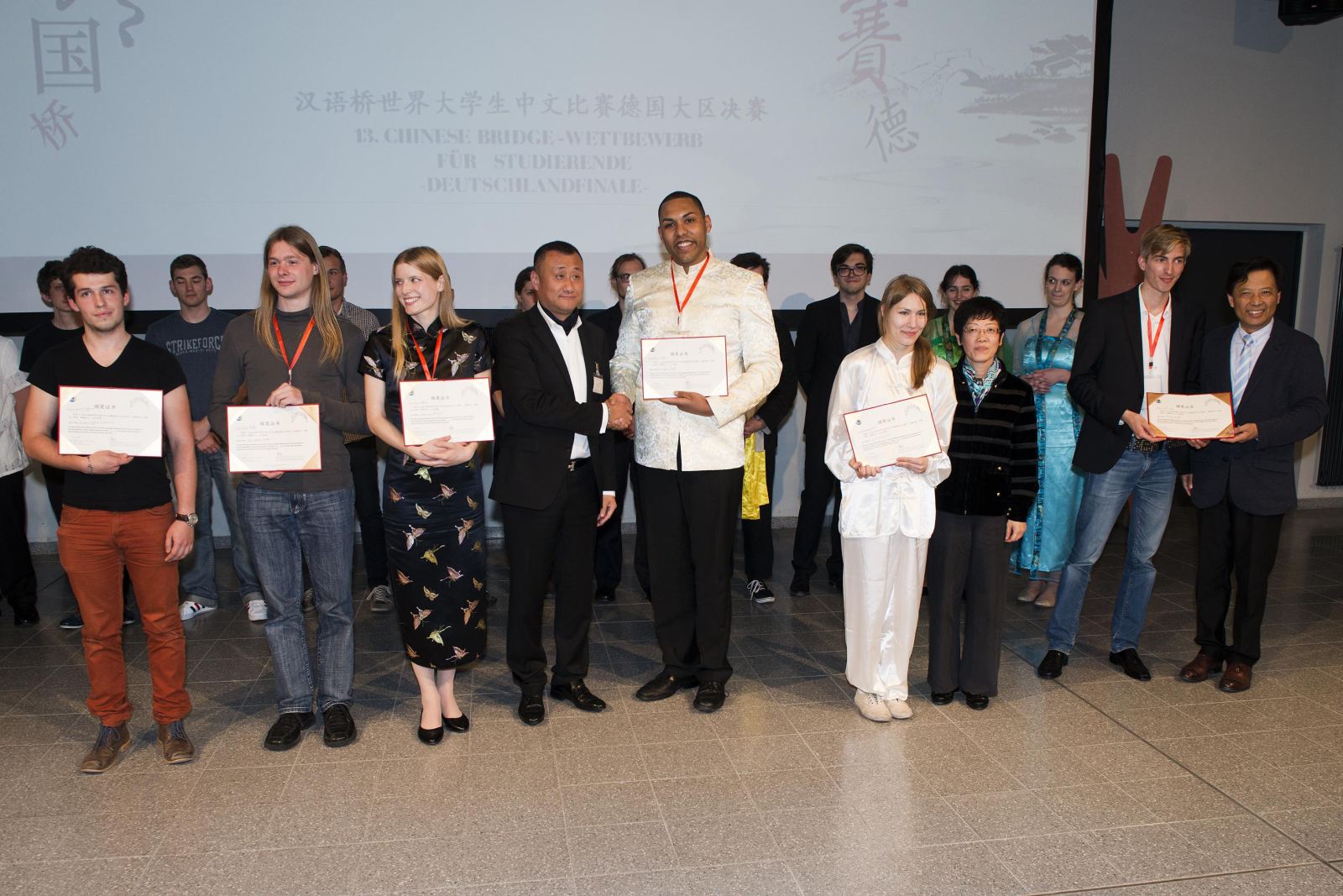 2014年5月17日,第十三届“汉语桥”世界大学生中文比赛在汉诺威成功举行。此次比赛共有19名选手参赛。比赛共分为三个环节,第一个环节选手以“我的中国梦”为主题进行演讲;第二个环节为知识问答环节;最后一个环节参赛选手们则要进行才艺展示。此次比赛选手之间竞争激烈,参赛选手们都表现出了极高的汉语水平。在知识问答环节,不少对于中国人都不易回答的知识题,参赛选手却能对答如流。在才艺展示环节,选手们更是各显神通,有的即兴挥毫画中国传统水墨画、有的打太极拳、有的朗诵诗歌,更多的选手则是一展歌喉,唱起了中国民歌和流行歌曲,他们的精湛表演赢得了观众们的热烈掌声。经过激烈的角逐,最终来自波鸿大学的得了一等奖,他们将代表德国大学生前往中国参加“汉语桥”总决赛。去年曾在我校国际文化交流学院学习汉语的德国学生蔡儒本同学,本次参赛获得了三等奖。