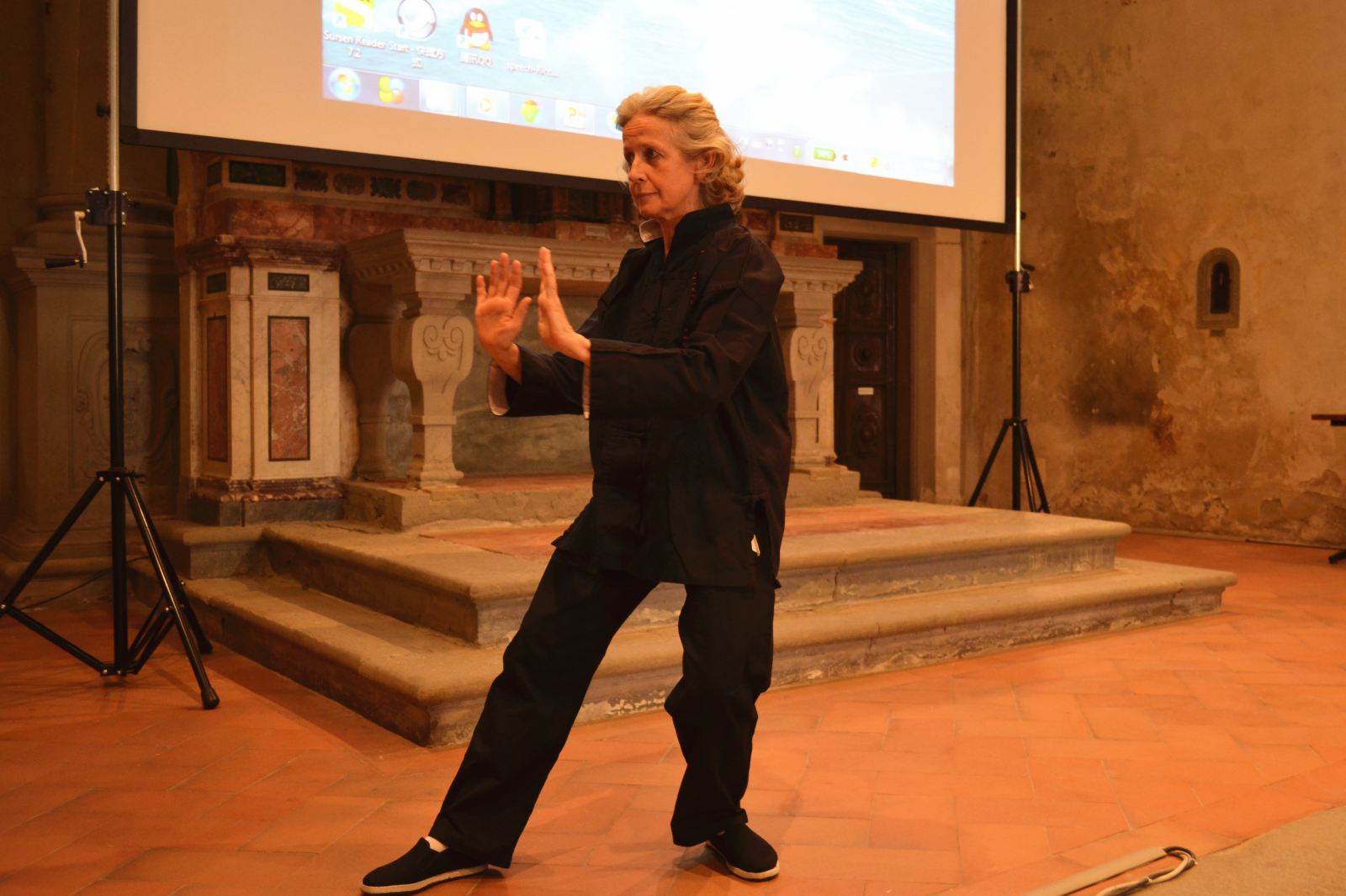 在中级班学习的Cuccia和Capella代表学生发言。Cuccia引用了孔子的一句话——知之者不如好之者,好之者不如乐之者——来表达她在孔院学习汉语的乐趣。Capella则介绍了自己学习汉语的经验,建议其他同学找到适合自己的学习方法,快乐地学习汉语。初级班的Daniela Benemei在仪式中给大家带来了精彩的杨式太极拳表演。
