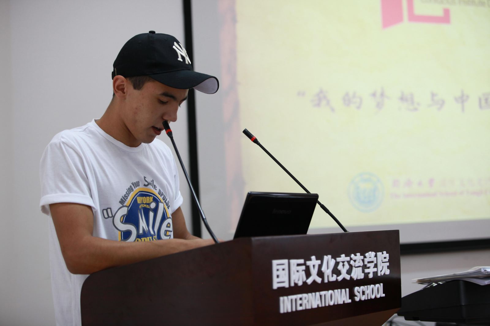 比赛由老挝籍本科新生杨如凤担当主持,她吐字清晰、落落大方,中文功底令人折服。来自泰国的孙溯同学自幼学习中文,与中国有着不解之缘。他从容淡定、侃侃而谈,成为比赛当仁不让的冠军人选。来自波兰的严立行同学分享了自己与父亲的故事。他选择汉语,是因为爸爸的一句话“儿子,中国有着世界上最古老的文明,是多么地辉煌!有一天你一定要到那边去亲眼见识这一切。”爸爸的这句话引领他找到自己人生的道路。他语言流畅、吐字清晰,受到评委老师的一直认可,一举获得二等奖和当场的最佳语言表达奖两项大奖。来自日本的梅津纳幸同学是孔子学院奖学金老生代表,与大家分享了在中国各个城市旅行的见闻与感受,获得三等奖。所有参赛选手演讲均紧紧围绕“中国”、“梦想”这两个关键词,语言流利、故事感人,表现优秀。