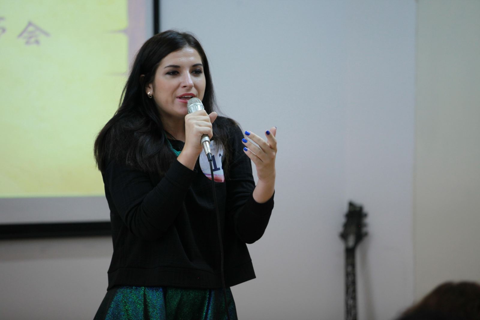 图为乌克兰学生友丽亚演唱中文歌曲《我的歌声里》