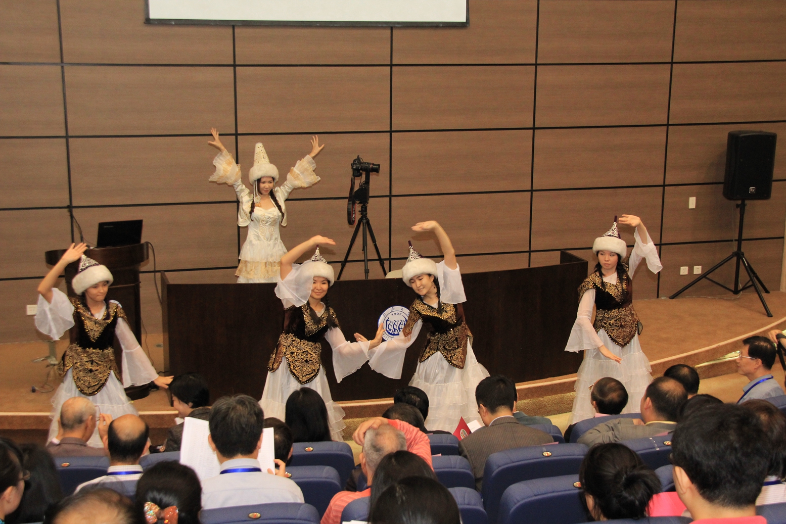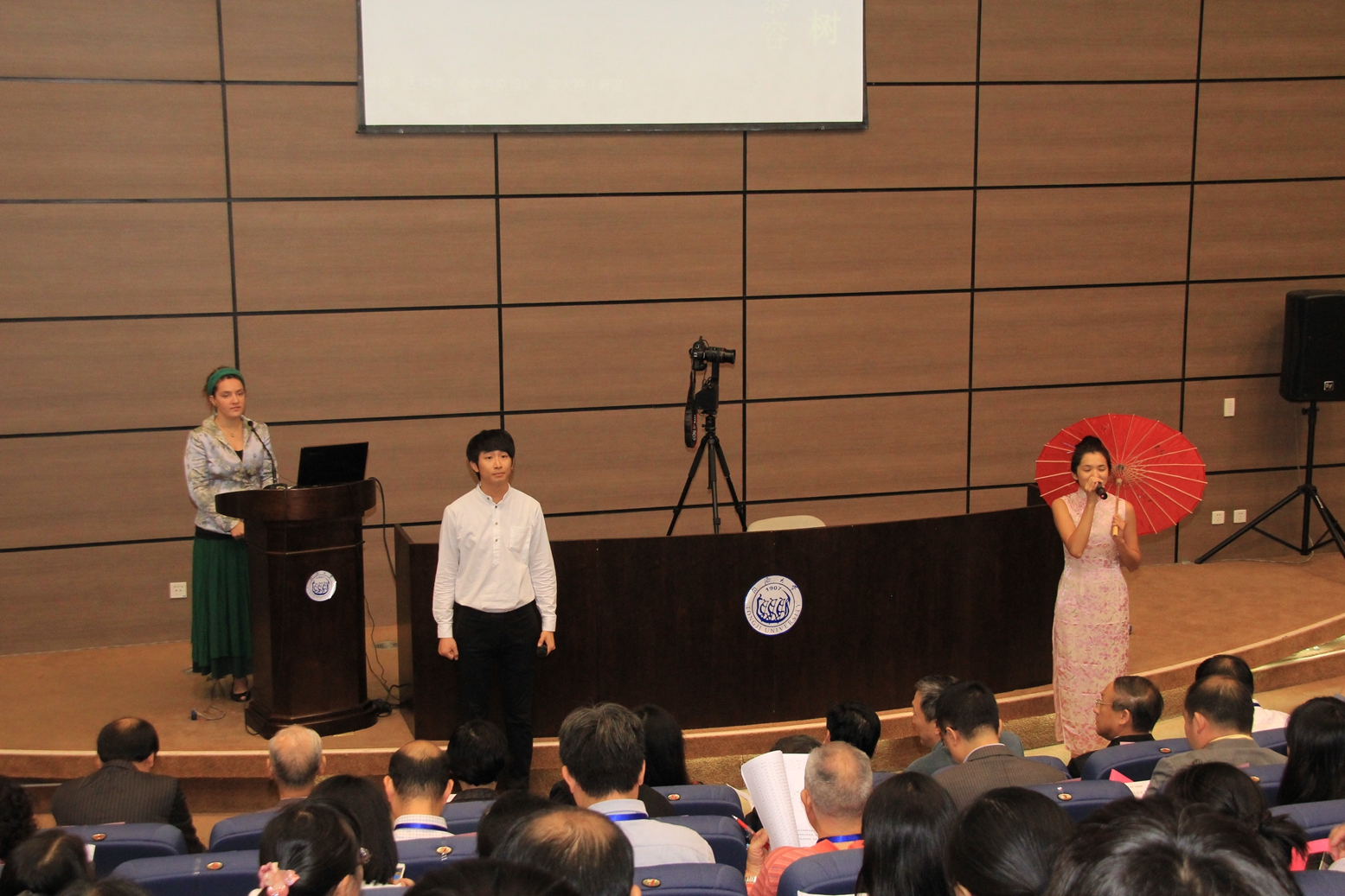 这次会议也展示了同济大学留学生教育的成效。会议开幕前,国际文化交流学院的留学生们表演了哈萨克斯坦传统舞蹈、朗诵了《一棵开花的树》,合唱了一首《茉莉花》,并共同用流利的汉语对代表们说:“同济大学欢迎您!”引起代表们的一片叫好。会议期间,青年古筝演奏家、同济大学陈珏老师还为代表们弹奏了一曲《渔舟唱晚》,国际文化交流学院的五位青年教师则表演了古琴曲目《梅花三弄》,也赢得满堂喝彩。