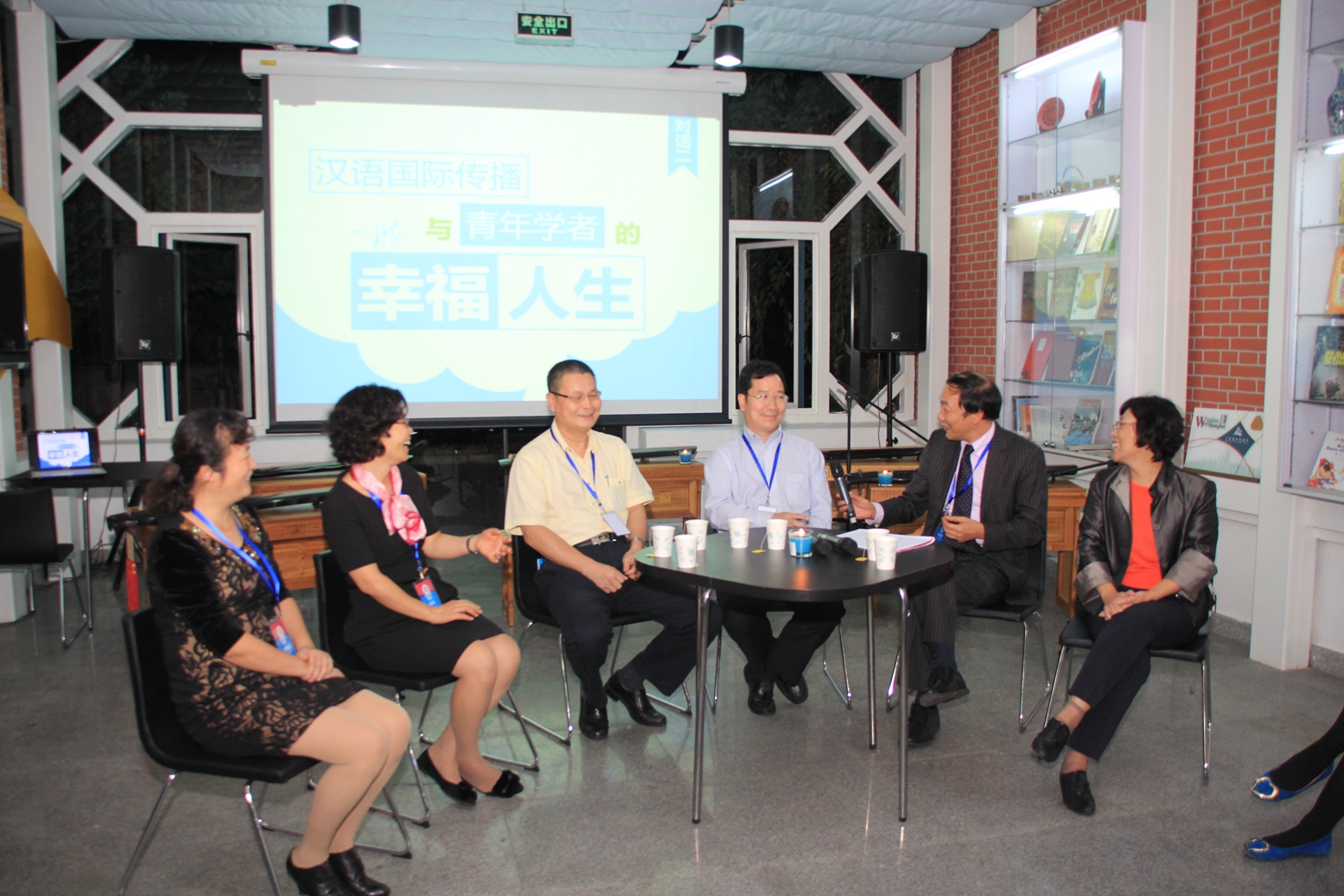汉语国际传播事业任重道远,使命的传承需要青年,但青年学者在成长过程中会遇到很多学术和生活上的困惑,为他们答疑解惑,事关汉语国际传播事业的未来。为此,25日晚,会议主办方专为青年学子安排了一场“青蓝对话”,寓“青出于蓝而胜于蓝”之意,请学界权威与高校“青椒”进行零距离对话。这天晚上,国际文化交流学院一楼东厅显得特别温馨。烛光摇曳,琴声悠扬,温馨而优雅。对话围绕“汉语国际传播与青年学者的学术人生”及“汉语国际传播与青年学者的幸福人生”两个主题展开,陆俭明、李宇明、马庆株、谭汝为、杨光俊、吴应辉、郑通涛、张豫峰、孙冰、翟艳等与青年学者们论人生,聊幸福,谈学问,展未来,并寄语青年学者:坚定信心,锲而不舍,不但能接下汉语国际传播的火炬,而且还有能力让火炬越燃越亮。