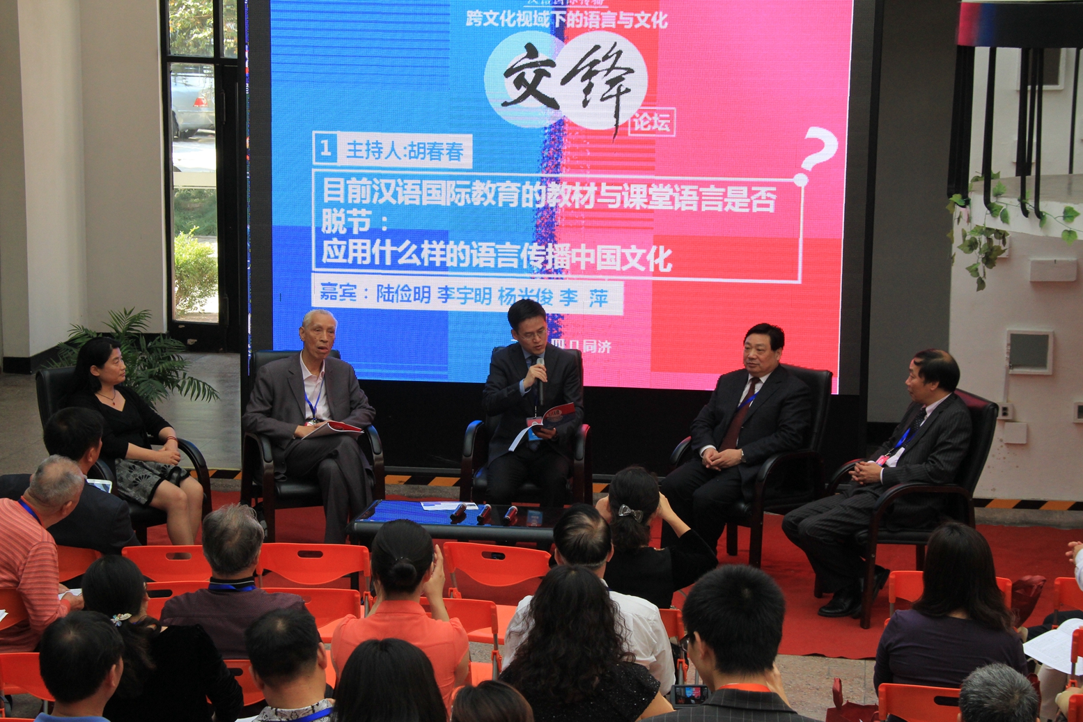 本次会议内容丰富,形式让人耳目一新。除了大会主旨发言,25日下午,大会还围绕汉语国际传播领域的热点话题,精心组织了一场别开生面的“交锋论坛”,邀请学界权威,围绕三个热点话题,进行了对话和交流。三个话题分别是:“目前汉语国际教育的教材、课堂语言与现实生活是否脱节:应用什么样的语言传播中国文化”、“大华语与小汉语:谁应作为汉语国际传播的主导者和实践者”、“汉语热:实热还是虚热,应降温还是升温;方法与目标:兼及如何规划汉语国际传播的未来”。论坛由胡春春、翟艳、黄美旭分别主持,李宇明、陆俭明、马庆株、谭汝为、杨光俊、吴应辉、姚喜明、张豫峰、陈慧中、李萍、胡春春等作为嘉宾,主持人和嘉宾都是语言与文化传播领域的专家,都有理论和实践的建树和经验,所以整个论坛高潮迭起,思想和学识的正面交锋碰撞出无数的智慧火花。