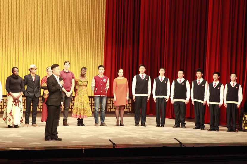 在上海京剧院青年麒派演员郭毅的带领下,我院留学生艾乐、维拉尼卡、胡里奥、李安、拉文德、瑞秋等与光明中学学生齐声清唱,博得满堂喝彩。京剧作为国粹,有着很高的欣赏价值,京剧的美,无论在服饰,在唱,还是在舞姿,身段,服饰…都体现地淋漓尽致。京剧是一门博大精深的高雅艺术,要学习、把握其内涵美不易。对于留学生而言,他们缺少相应的文化背景知识,京剧学习尤为困难。但凭借对中国京剧文化的热爱之情,留学生们在专业老师的指导下,已经唱得有模有样。
