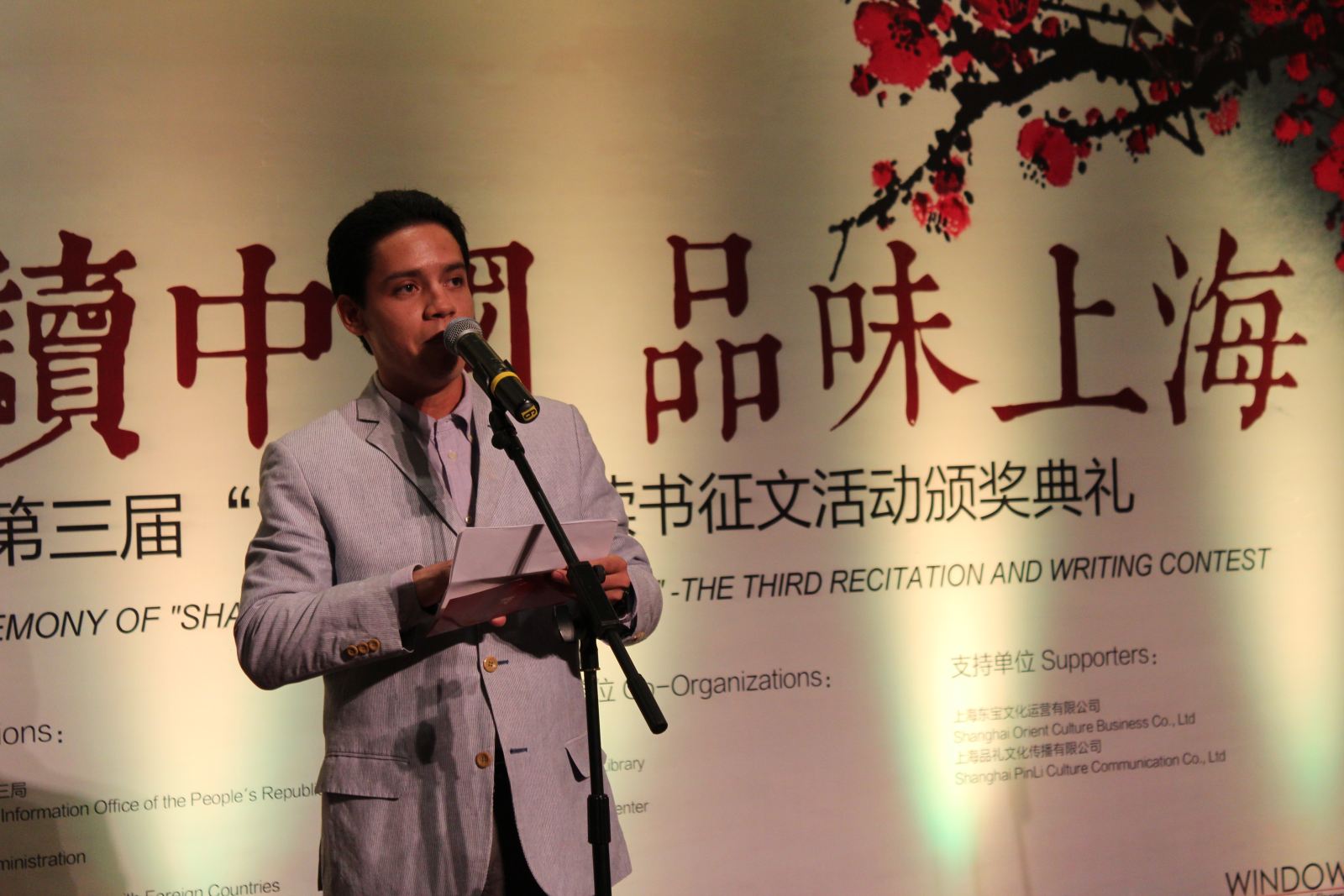 日前,国务院新闻办公室三局、上海市旅游局、上海市人民对外友好协会、上海图书馆联合主办的“阅读中国•品味上海”——第三届“相聚上海”读书征文活动,举行了颁奖典礼。我院留学生崭露头角,五名学生分别获朗诵比赛一、二等奖、优秀奖和鼓励奖。获得一、二等奖的法瑞佐和名仓步美是我院2013级孔子学院奖学金留学生,他们应主办方特别邀请,作为获奖者代表出席颁奖典礼。