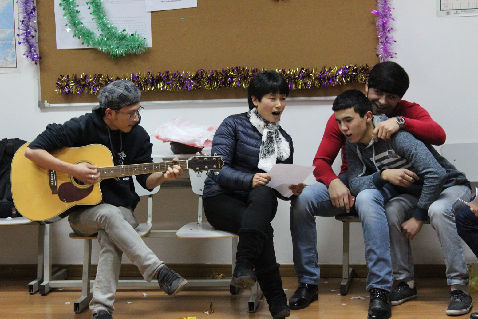 所有参与的班级都使出浑身解数,让班级的布置和活动的安排与众不同。有的班级以冷餐会的形式,大家一起分享各自国家迎新年的习俗,交流来华后的经历和感受;有的班级设计了很多跟汉字有关的有趣游戏,大家一起参与,寓教于乐,其乐融融;有的班级搭了小舞台,留学生们各施才艺,挥洒激情与活力;还有几个班级聚在一起,展开了卡拉OK比赛……