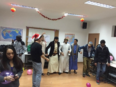 2014年12月26日下午,随着第六节课下课铃的响起,国交院静谧的教学楼里顿时热闹起来。每个行色匆匆的留学生的脸上,都洋溢着灿烂的笑容,每个教室里,都有留学生同学在班主任的指导下快乐地装饰教室,为马上举行的迎新联欢会做准备。