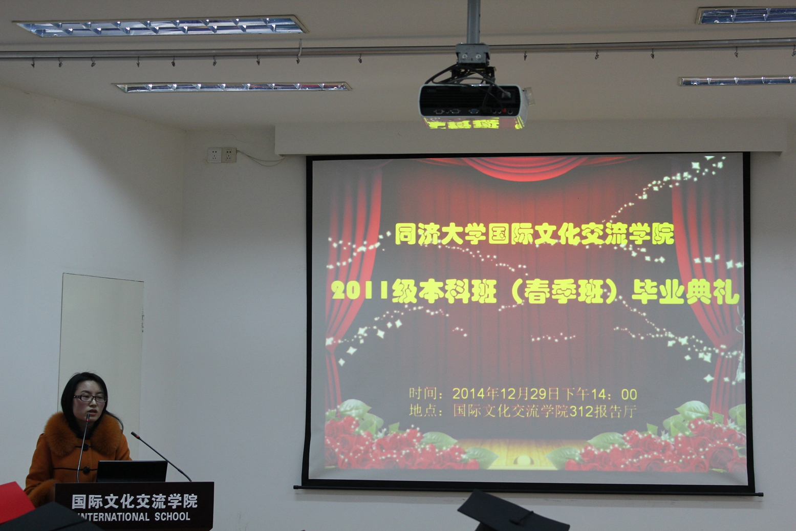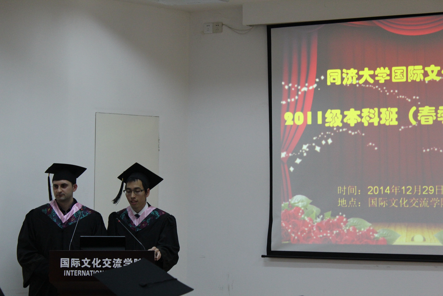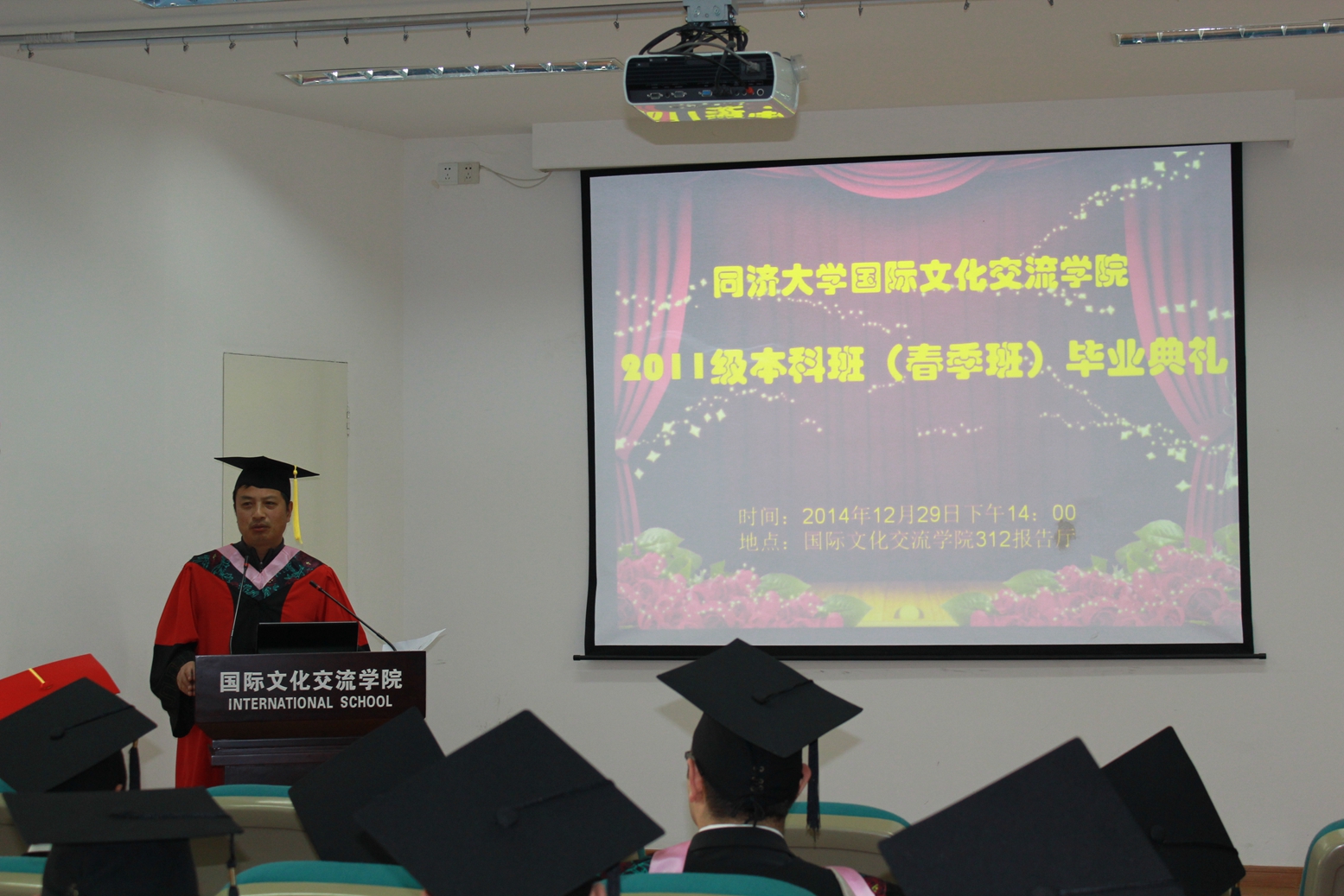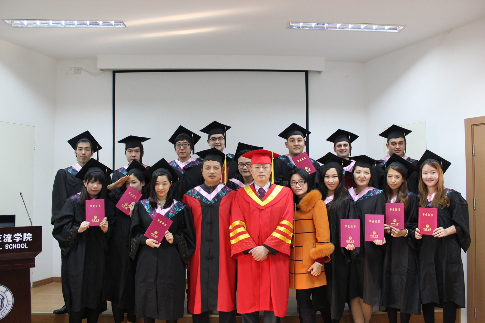 2014年12月29日下午,2011级汉语言本科(经贸方向)春季班毕业典礼在学院312报告厅举行,共有来自6个国家的15名留学生顺利毕业并获得学位。陈强院长、孙宜学副院长、各任课教师及毕业班学生亲友等出席了典礼。