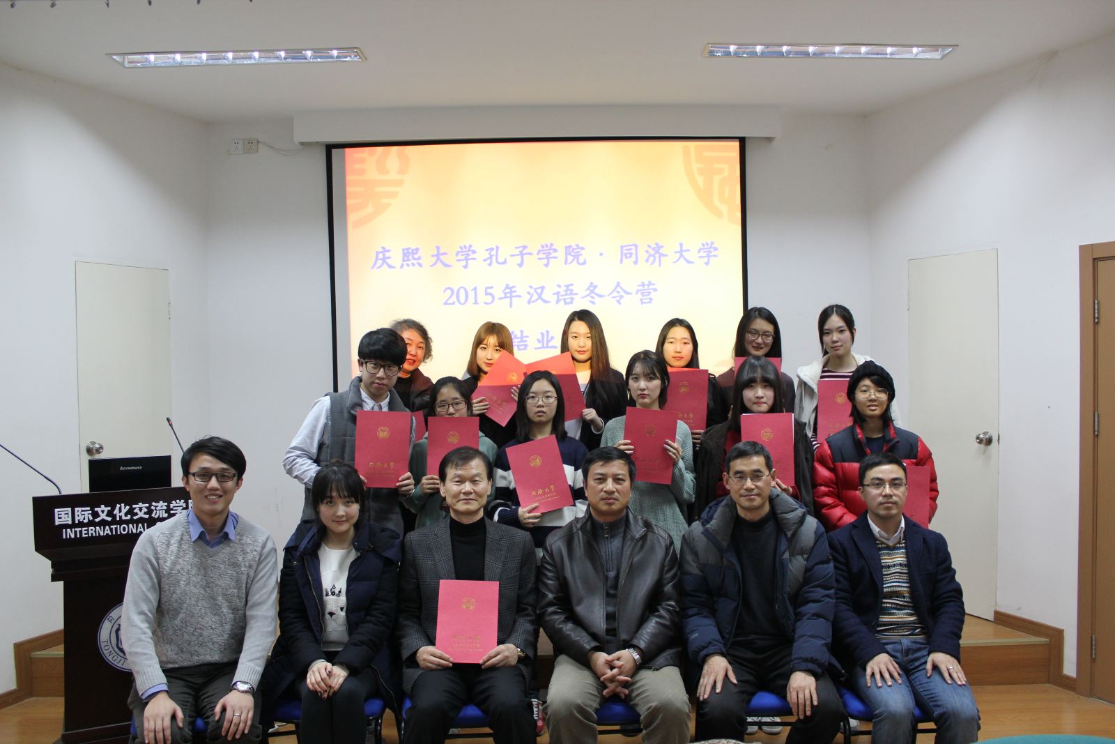 2015年1月24日下午,为期一周的韩国庆熙大学·同济大学汉语冬令营在我院举行结业仪式。我院院长陈强教授在开营仪 式上致辞,副院长孙宜学教授在结业仪式上致辞并为学生颁发了结业证书。