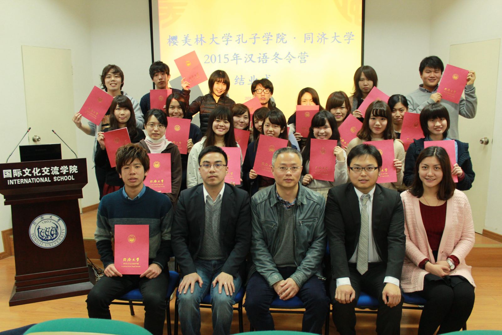 2月24日,樱美林大学·同济大学2015年汉语冬令营在同济大学国际文化交流学院圆满结业。我院陈强院长在结业式上首先向顺利完成研修的学员表示祝贺。他说,留学是接触中国社会的良好机会,希望同学们回国后继续学习汉语,并欢迎他们继续来同济长期留学。