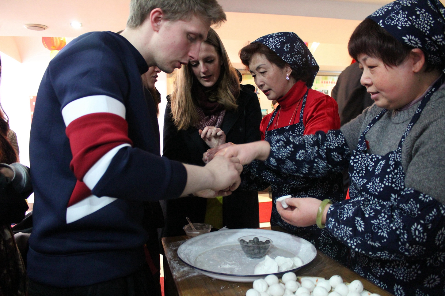 德国的朱莉同学也是第一次包汤圆,她觉得中国的阿姨既漂亮,又有耐心,手把手地教自己,“他们还特意为我们煮了汤圆让我们吃,味道好极了!”。