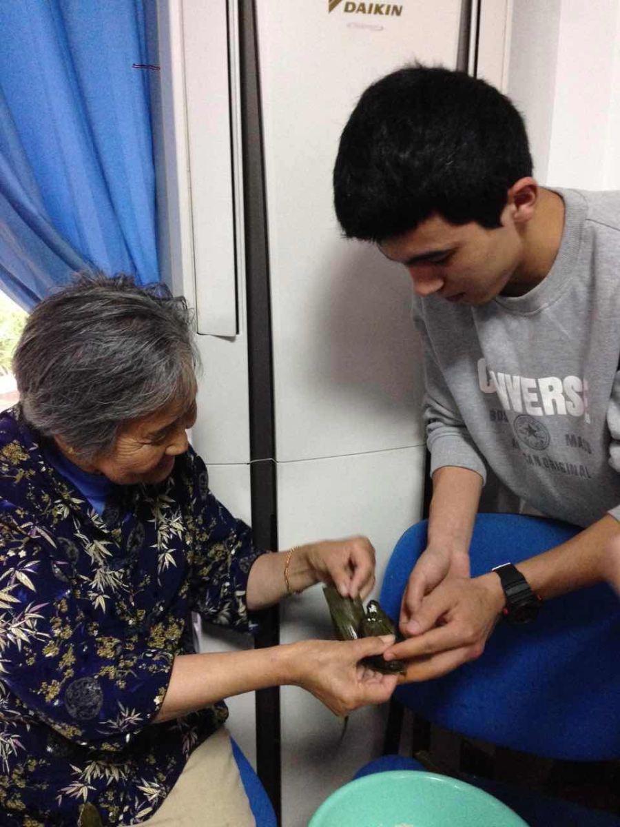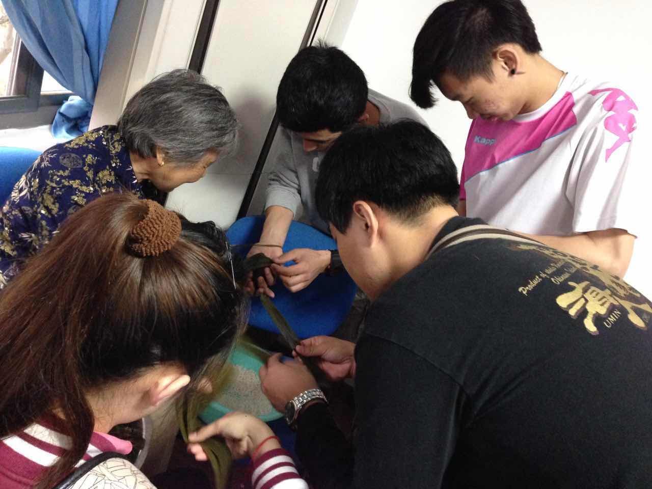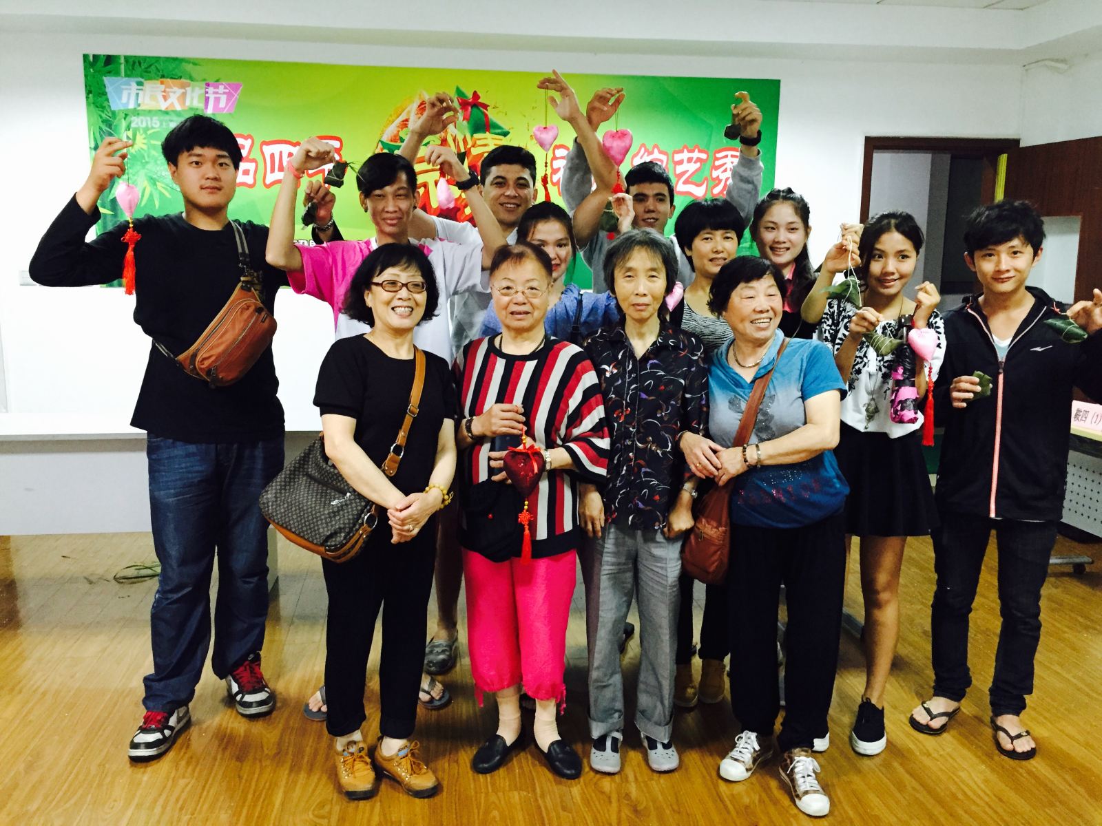 6月18日上午,我院2014级本科班留学生,作为孔子学院奖学金生代表,应邀参加了杨浦区四平街道举办的“粽情端午”社区文化活动。观看了社区居民表演的粽艺大赛,欣赏了阿姨妈妈们巧手缝制的多彩香囊,还跟着爷叔、大妈们学裹粽子。在爷叔、大妈们的热情指导下,一个个跃跃欲试,包裹得有模有样,亲身体会了千古流传的中华文化之魅力无限。