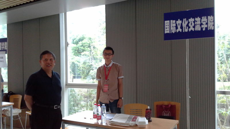 9月6日早晨7:30,综合楼一楼迎新会场和学院206汉语国际教育教学管理中心,刘涛和姚伟嘉老师已各就各位。
