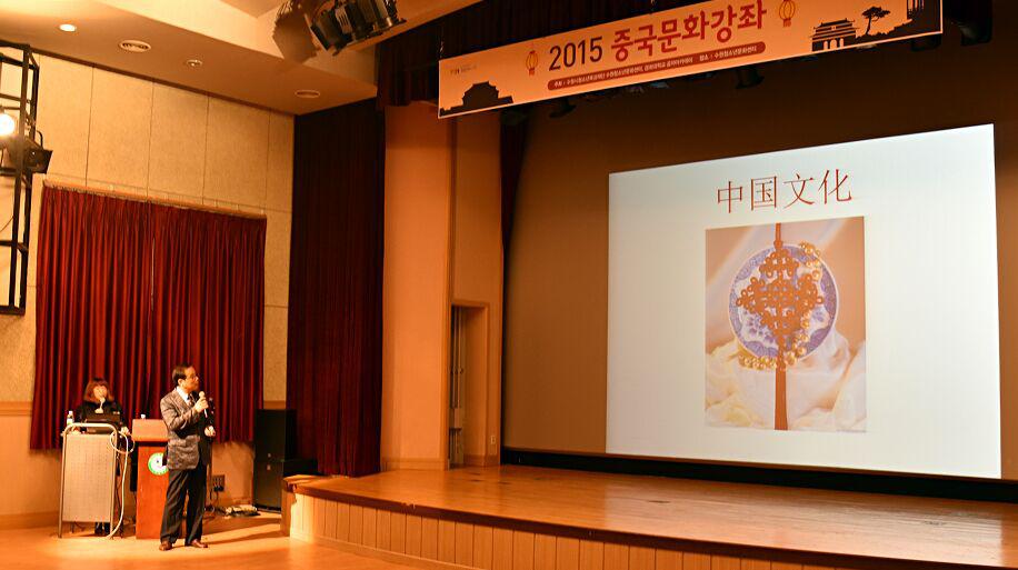 2015年9月12日星期六上午十点,由庆熙大学孔子学院与水原市青少年文化中心、水原市青少年基金会共同举办的“中国文化系列讲座”在水原青少年文化中心隆重拉开序幕。庆熙大学孔子学院韩方院长文炳淳教授,中方院长赵卫东教授,成均馆大学中文系李安东教授,水原市青少年育成财团理事长洪成官先生,水原青少年文化中心主任洪祥基先生等嘉宾出席了开幕式.