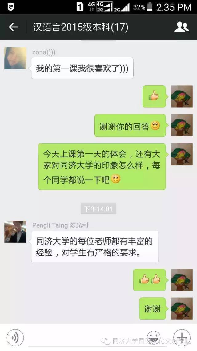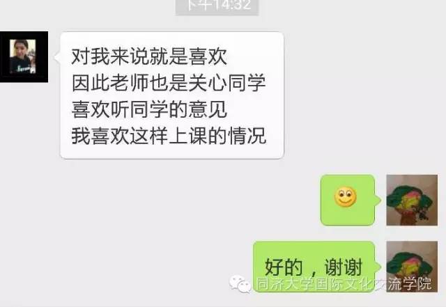 上课第一天,听听他们的声音吧:进修C2班的沙小晴,来自美食国度意大利,可是她对上海菜和同济食堂赞不绝口。(小编语:吃在同济,不枉此名!)同样来自C2班的韩国同学认为国交院的喵星人甚是可爱。(小编语:人喵和谐相处是咱大同济的一大特色呢!)
