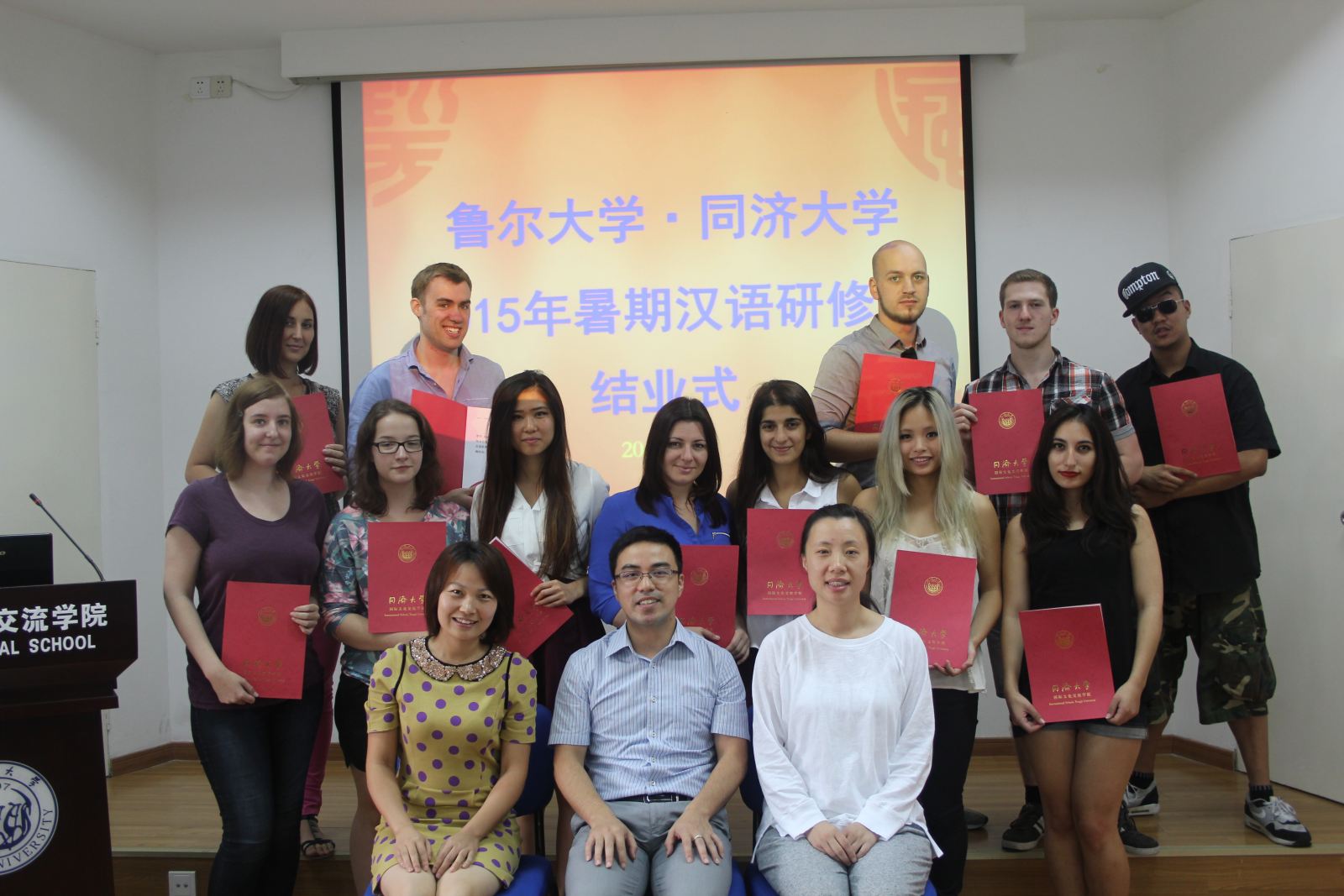 在结业仪式上,所有同学都用汉语发言。大部分学生说这是他们第一次来中国,感受到很多中国的新鲜事物,经过这两个月的研习,觉得自己的汉语进步很快。他们感谢任课老师,感谢同济大学给了这样一个机会,通过学习敢于和中国人交流,也不那么害羞了。随后,学员们一一从任课老师手中接过了结业证书并合影留念,为本次研修画上了圆满的句号。