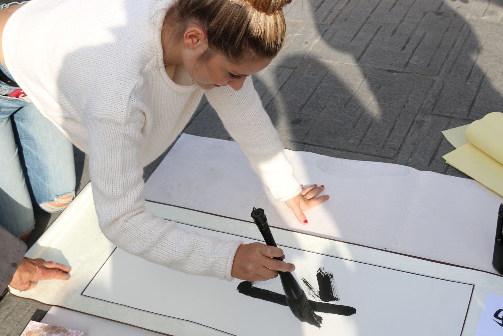 汉语公开课(汉语角)也是当天活动的亮点,优秀的中、意汉语教师们将教室搬到广场,15分钟内通过互动,游戏,展示,文化介绍等各种教学技能和方法为“学生”上了几堂生动的微型汉语课,引路人驻足聆听,喝彩不断。