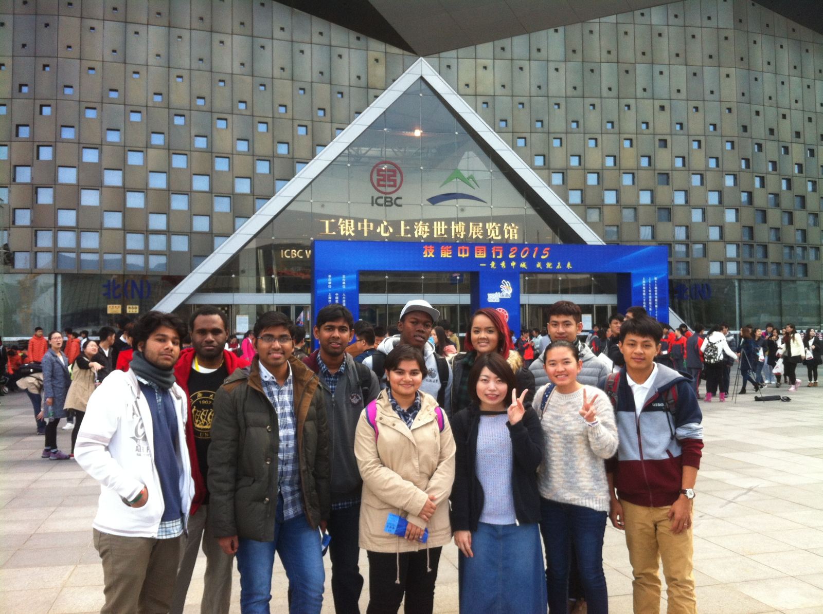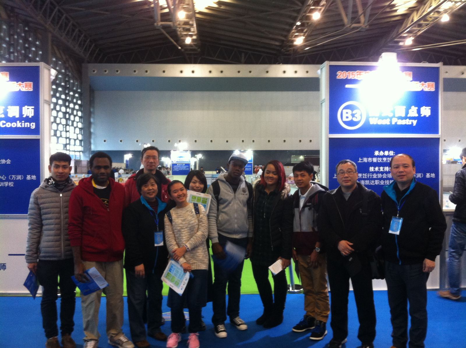 2015年11月28日,在上海市餐饮协会和聚侨公益中心的邀请下,我院部分留学生班班长和学生代表,来到上海世博展览馆观摩、体验了上海市职业技能大赛决赛等活动。从最接地气的中西面点制作、烹饪到最尖端的飞机制造和机器人设计,留学生们不仅品尝到了美食,还近距离接触到中国职业技能各领域的顶尖高手,大大开阔了眼界。有的留学生在中国商飞的展位上流连忘返,有的则为精美的玉石和象牙雕刻心醉神迷,还有的兴致勃勃地在起重吊装展位的模拟器上一试身手……